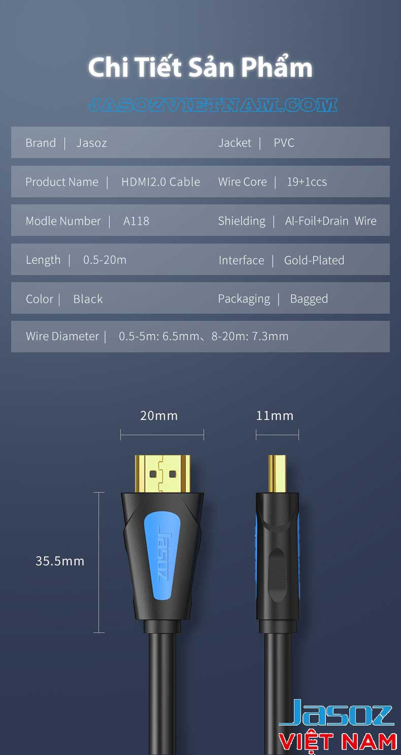 - 4K@60Hz, 18Gbps — HDMI 2.0 đầy đủ ở khoảng cách 0.5m:
